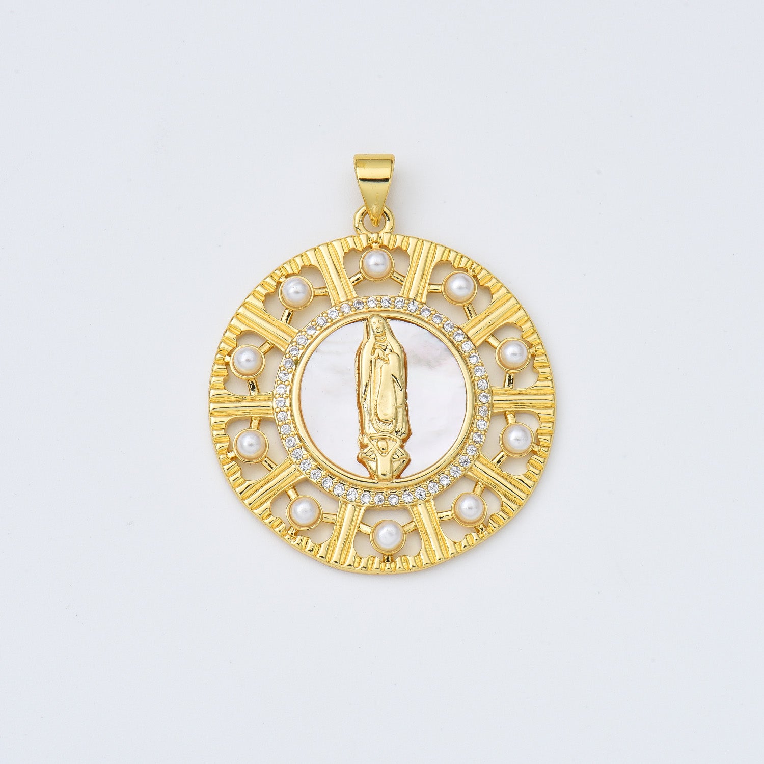 Material: Brass Based with 18K Gold Filled, Cubic Zirconia, Shell