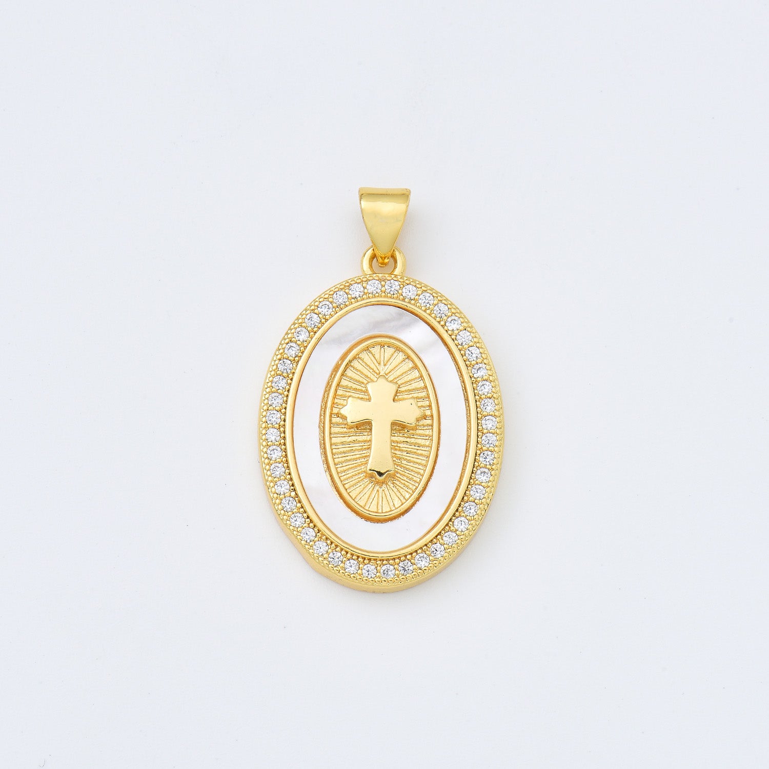 Material: Brass Based with 18K Gold Filled, Cubic Zirconia, Shell