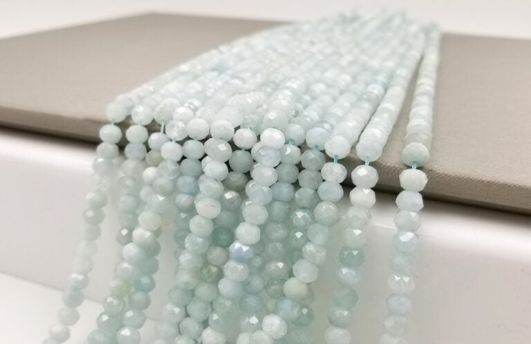 Aquamarine Faceted Rondelle Bead Matte Grade AAA Natural Gemstone Round Loose Beads.