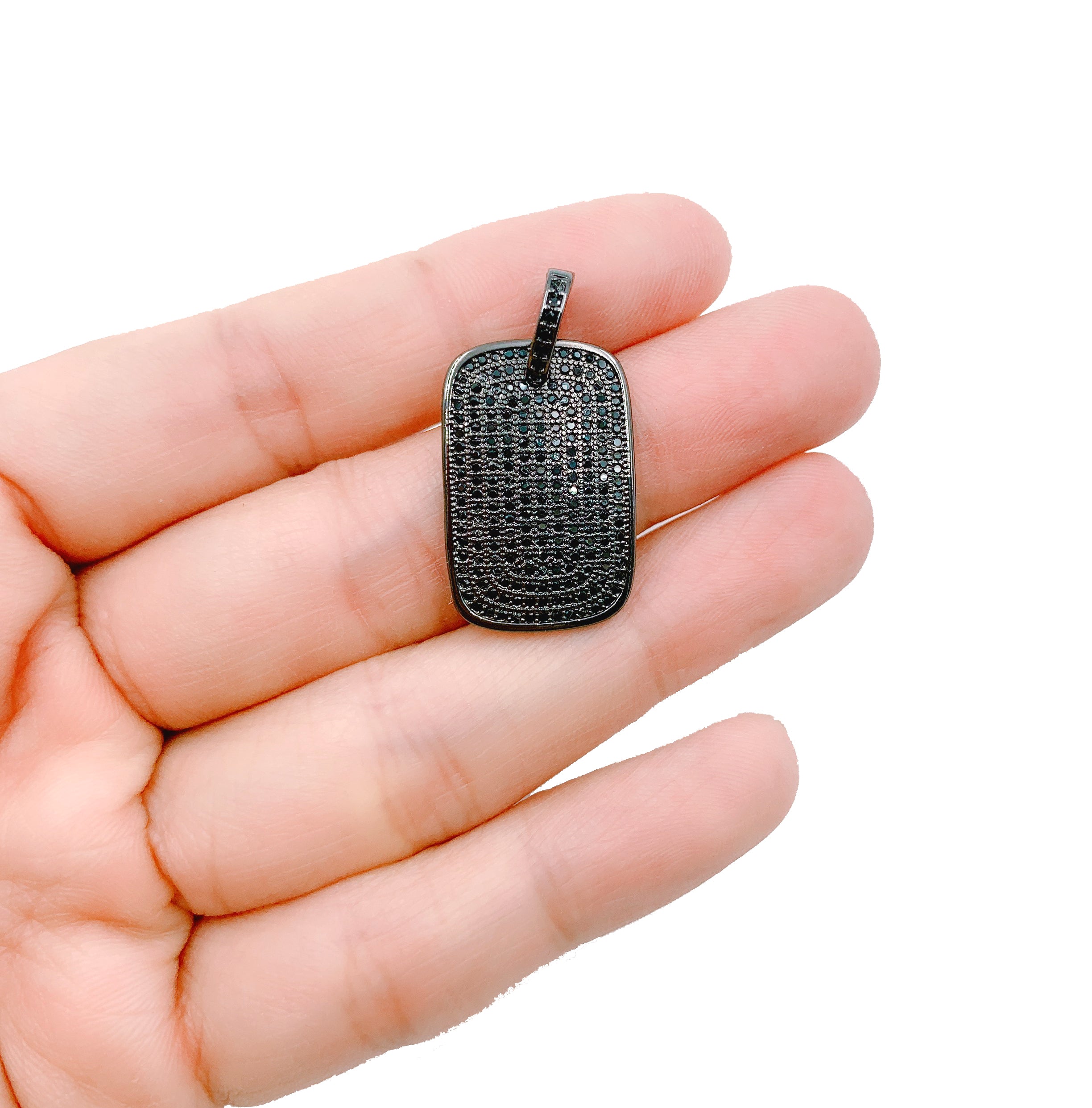 Black CZ Dog Tag CZ Micro Pave Charm Pendant, Dog Tag Charm, Dog Tag Pendant, Dog Tag Necklace, Cubic Zirconia, 25x16mm, CP1075