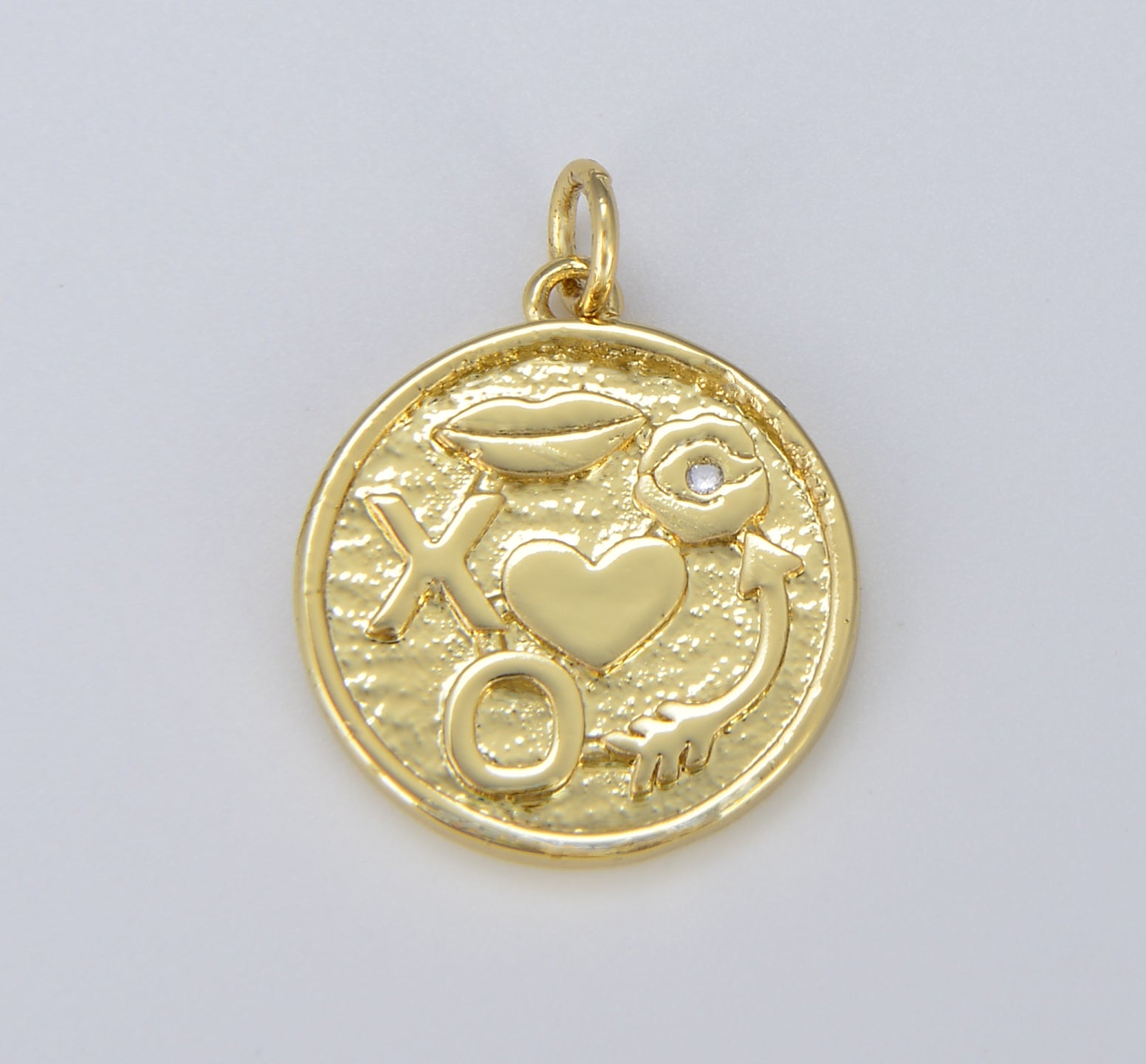 Good Luck Medallion Charm, 18K Gold Heart Lips Eye Arrow X O Amulet Medallion for Necklace Bracelet Component Supply, CP1567