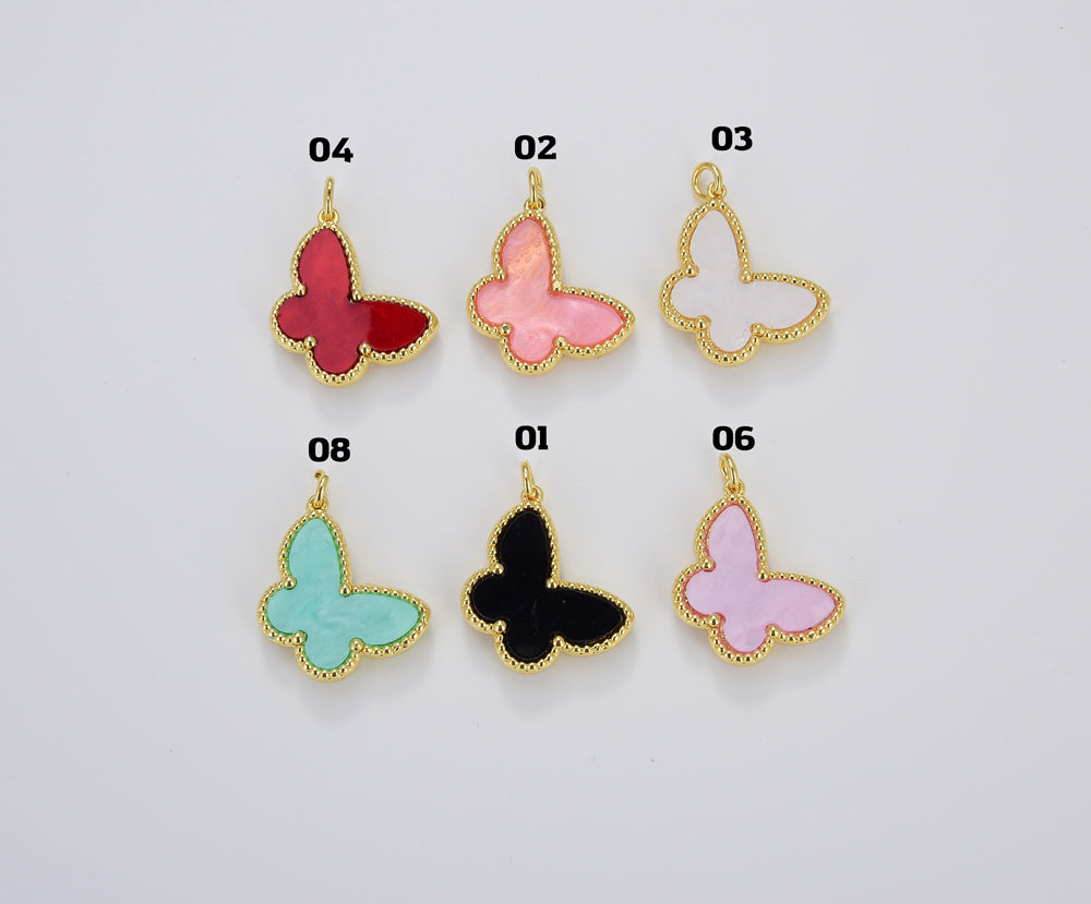 Pearl Mariposa Butterfly Charm, Black Onyx Butterfly, Butterfly Shell Pendant for Necklace Earring Supply Component in Gold Filled, CP1644