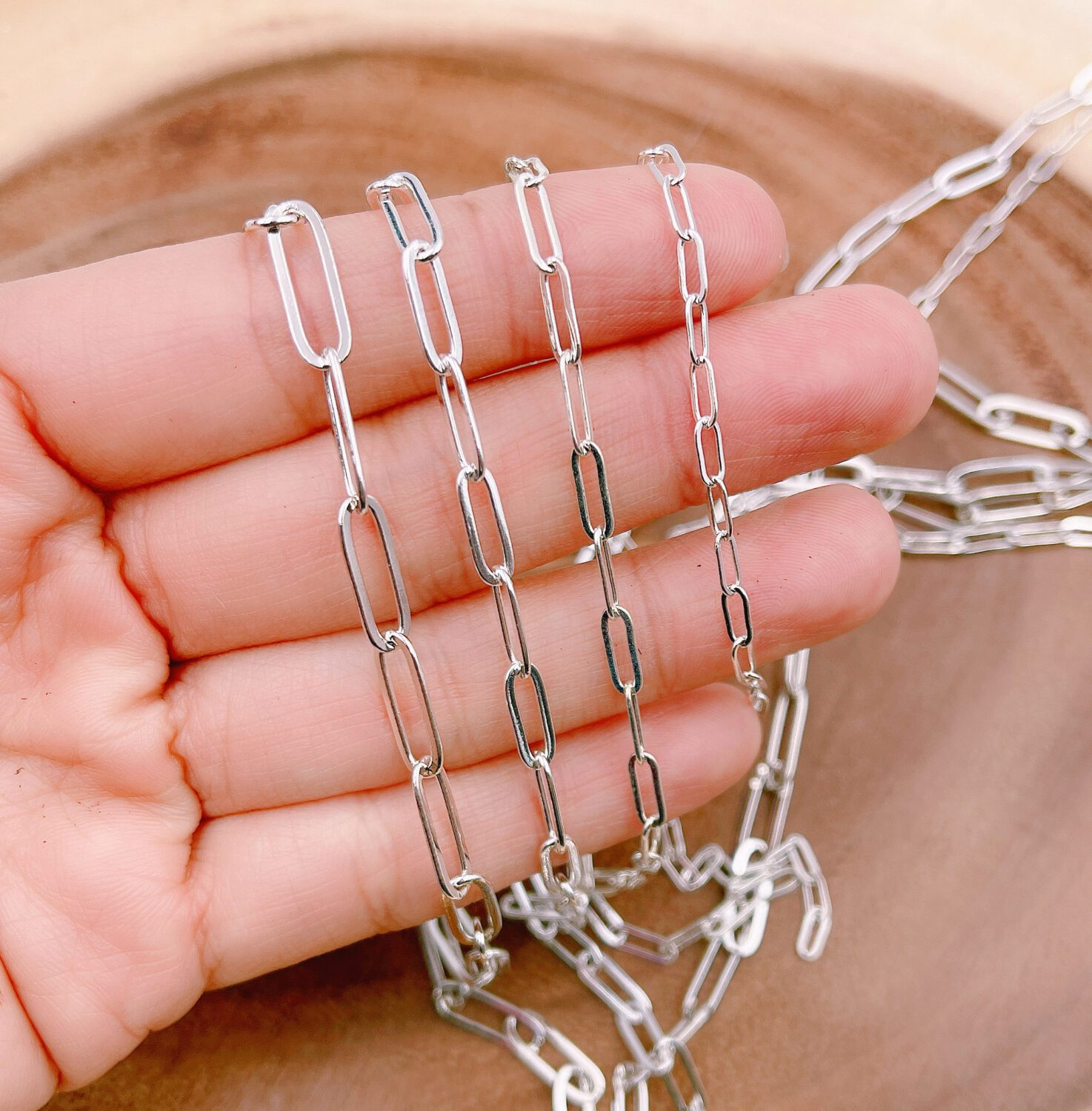 Shiny Silver Oval Paperclip Dainty Chain by Yard, Elegant Paperclip Link Chain by Foot, Wholesale Bulk.
