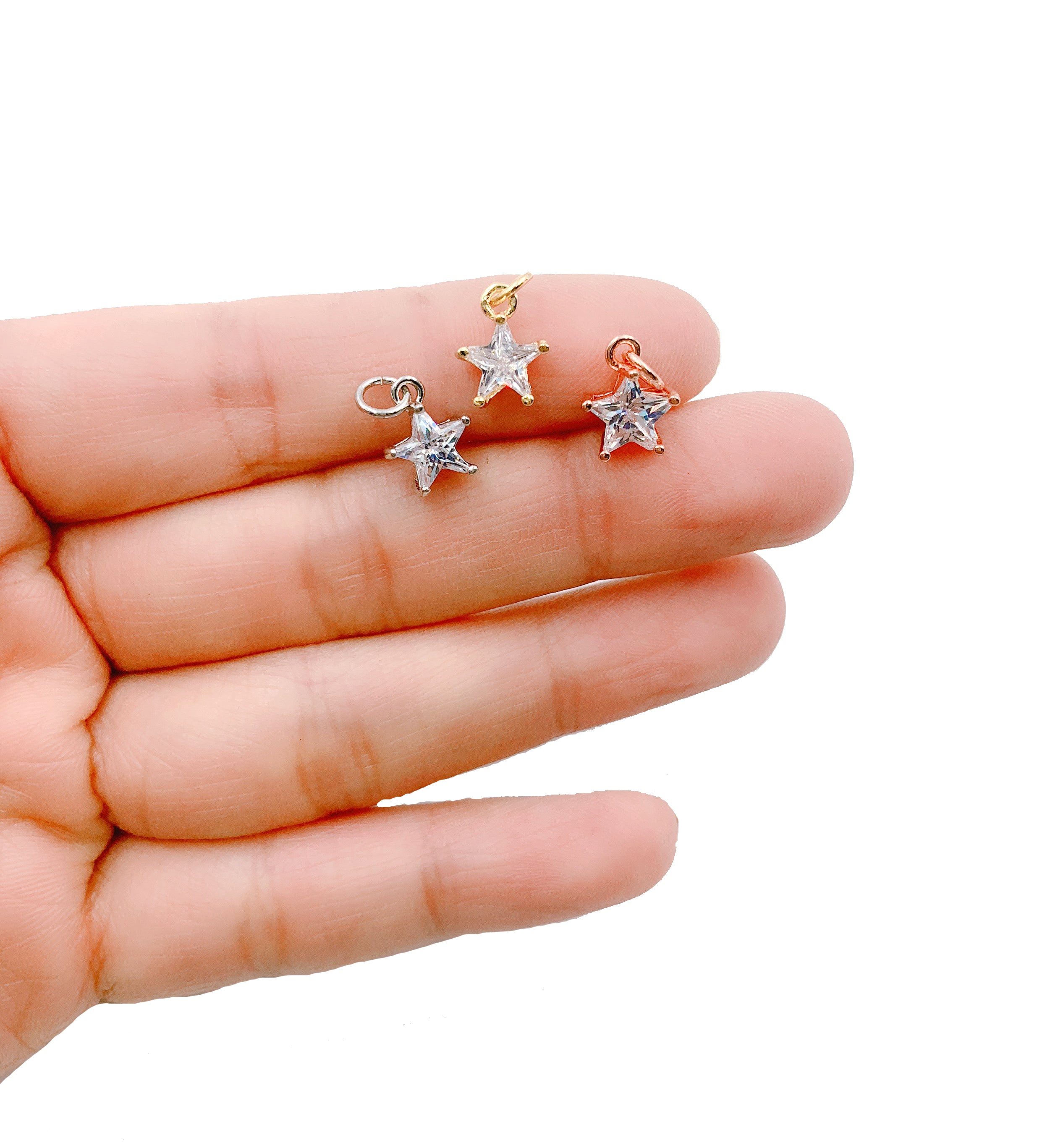 22K Gold Filled Micro Pave CZ Star Charms In Gold, Rose, Silver and Gunmetal finish. Please make sure to choose the color from the options.